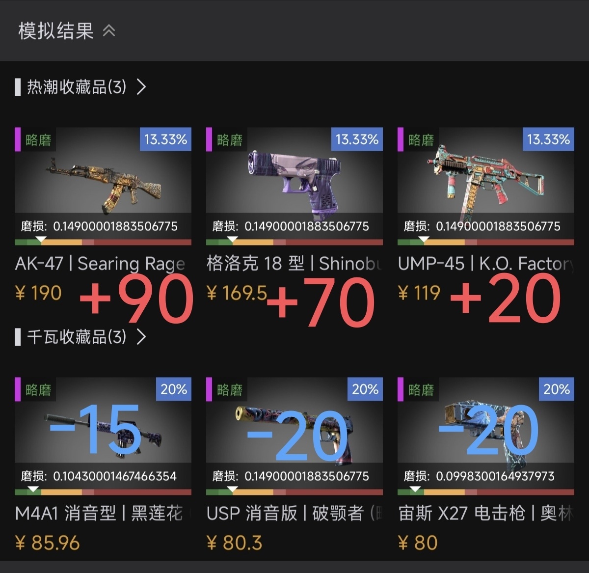 其余出热潮则起飞90-120馒头左右(磨损溢价)