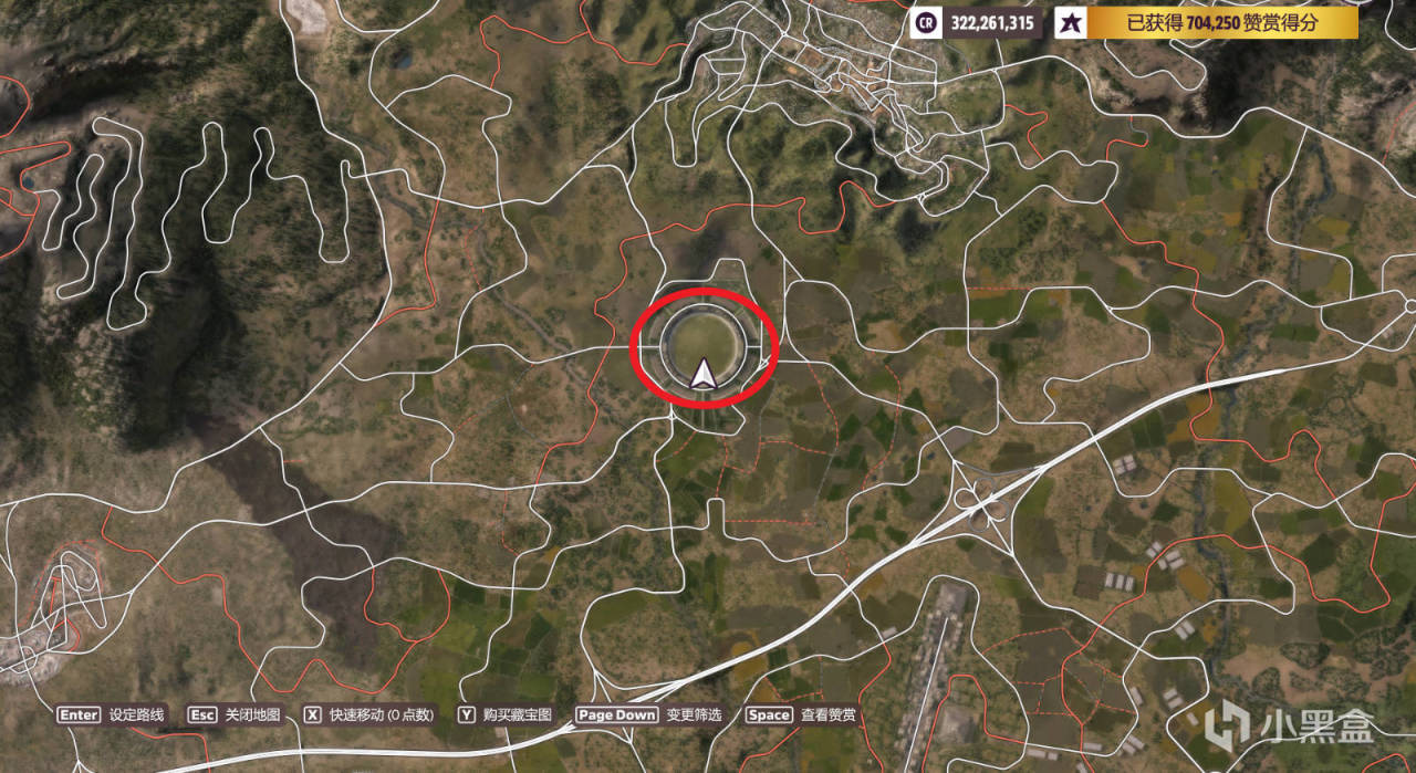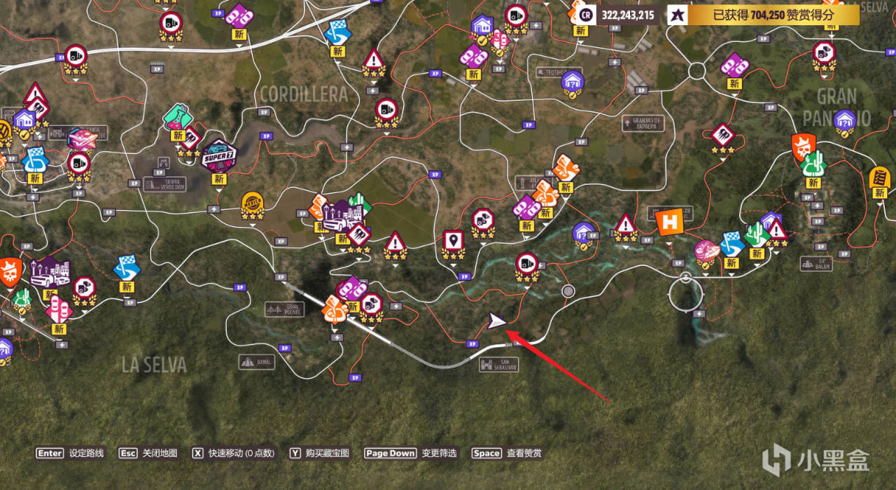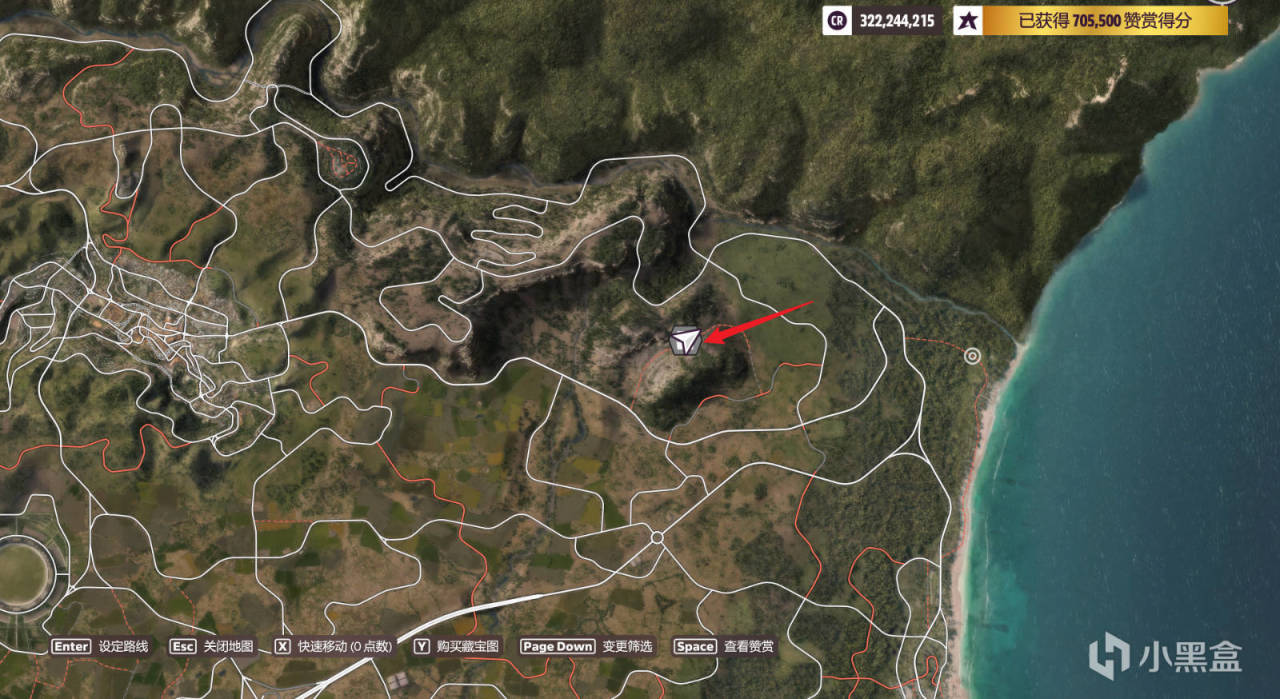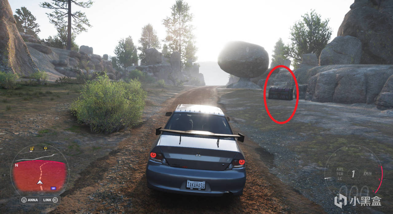 駕駛三菱LANCER贏得一場泥地競速系列賽事(車庫篩選三菱LANCER,泥地速通藍圖:182 516 750),即可觸發寶箱大致位置,位置如圖,獎勵爲300馬拉松點數