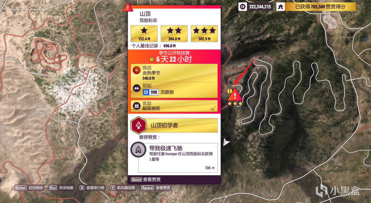 危險標誌:山頂,完成獎勵爲超級抽獎。(建議從箭頭所指處出發)