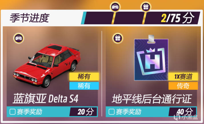 春季賽20分進度獎勵爲1986款藍旗亞 DELTA S4和40分進度獎勵爲地平線後臺通行證