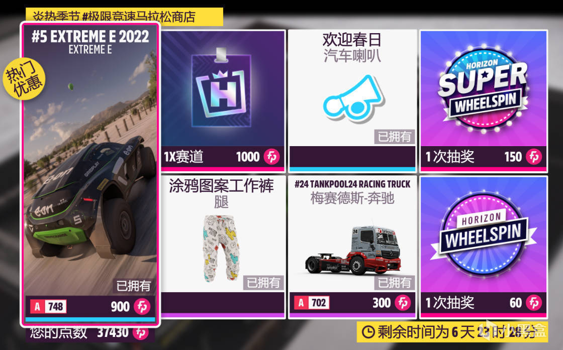 地平線後臺通行證,目前後臺車輛較少,五代和四代一樣採取投票返場車輛的方式,通行證換不換大家自行抉擇;塗鴉圖案工作褲、歡迎春日汽車喇叭沒有的建議大家兌換。每週更新的衣服和喇叭等沒有的建議大家無腦兌換!
