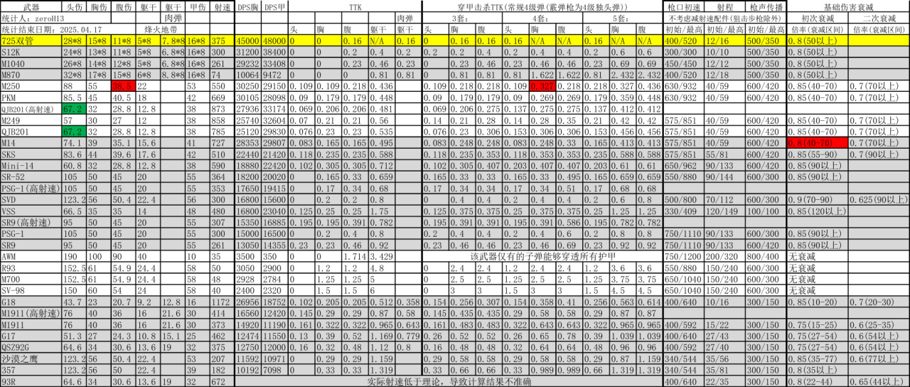 S4赛季全面战场霰弹枪、轻机枪、精确射手步枪、狙击步枪、手枪数据