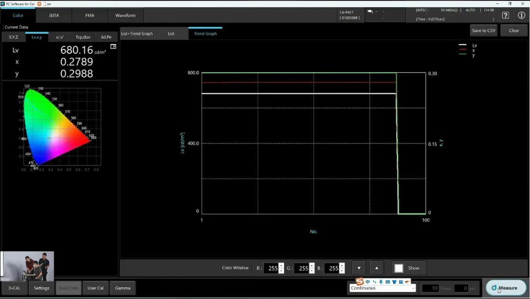 然後是全局亮度,實測爲680.16cd/㎡,比某些電視的峯值亮度還高。這裏順便提一嘴,全局亮度即平均亮度,反映的是屏幕在正常使用狀態下的整體明亮程度,峯值亮度則是短時間內達到的最大亮度值,對於支持HDR的顯示設備來說,峯值亮度越高,越能呈現出更明亮的高光部分和更深邃的黑色,畫面的層次感更強。