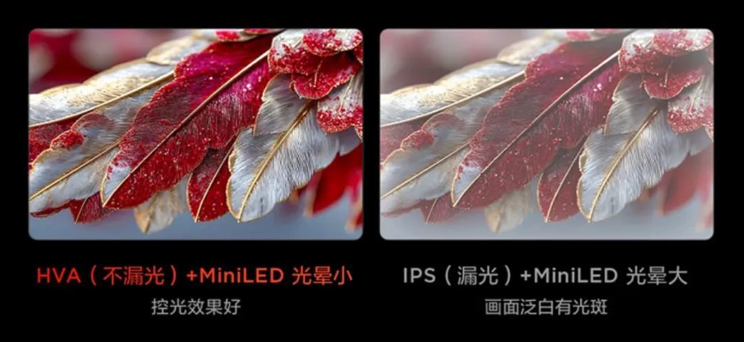 而在與Mini LED技術結合後,HVA屏也可以更好地實現分區控光,減少漏光,提升屏幕背光均勻度,像Mini LED電視常見的“光暈效應”和“黑場發灰”問題也能夠有效控制,在展現高動態範圍內容時色彩更加飽滿,畫面更加細膩。