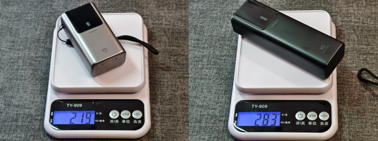 10號Mini比10號要輕60多克,並未與體積掛鉤,這點也可理解,畢竟10Mini直充/放電功率也達到55W,電路部分並不能減少太多重量。