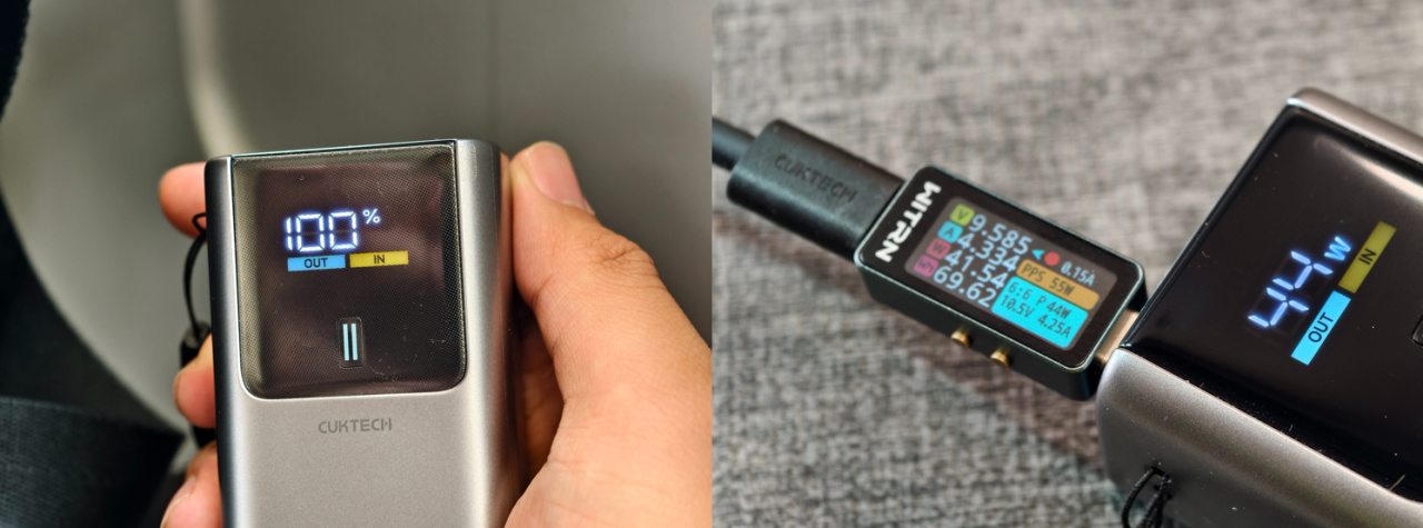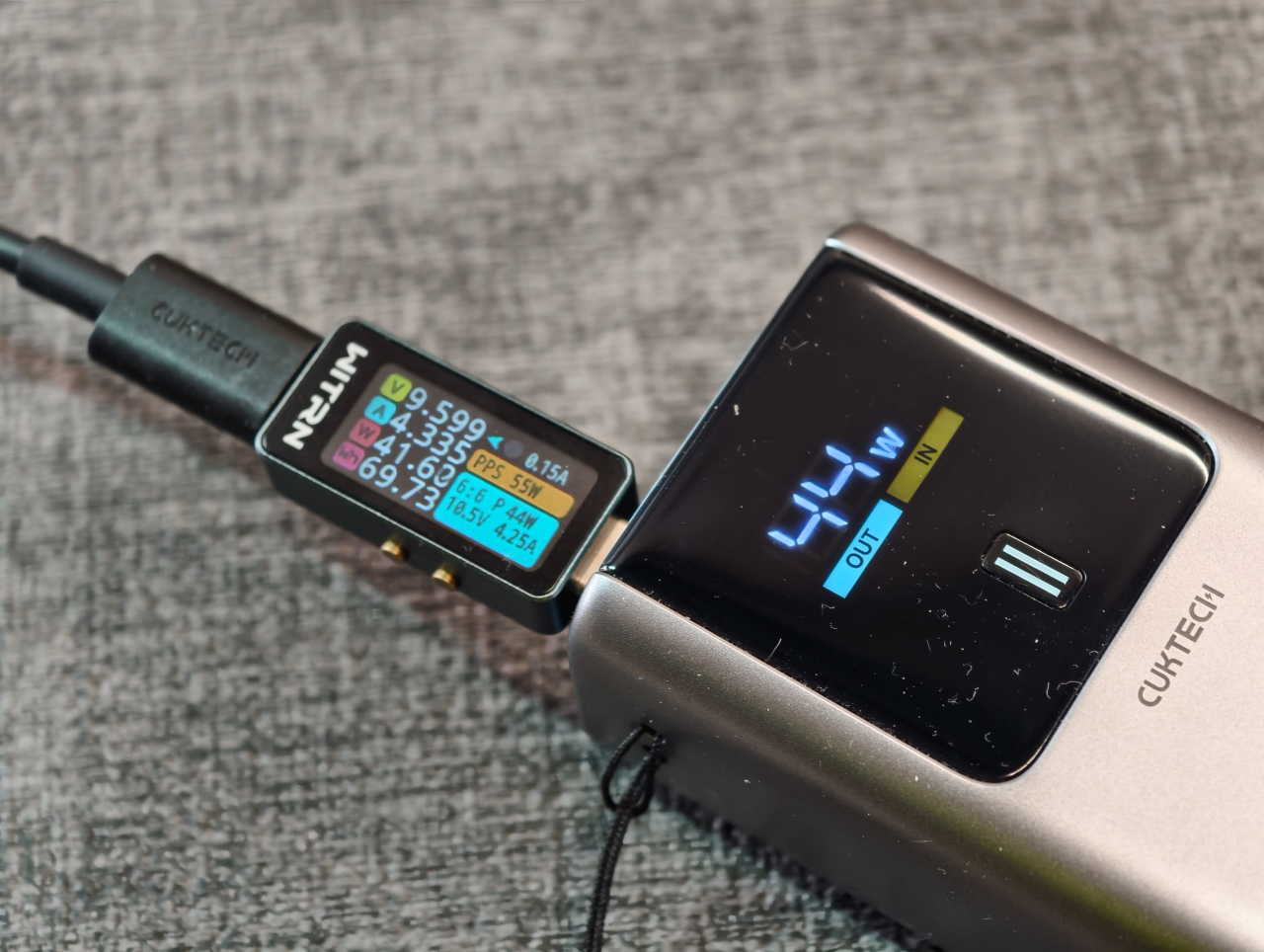 實際體驗中,以支持PD協議的魅族21Note爲例,輸出功率表顯最大爲44W,實際則爲41W左右,充電功率不錯,準度略低於TFT彩屏的10號/15號Ultra等,但也夠用。