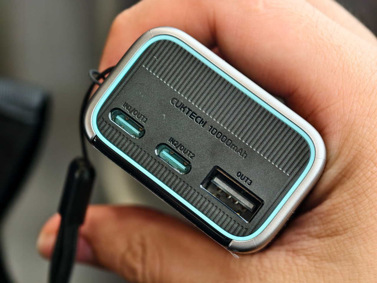 它相較10號要小上大約40%,同樣爲10000mAh容量,體積差異主要體現在它更加矮胖一些。握持感受要比10號更加趁手,加上掛繩Buff,出行隨身攜帶能力要強於10號。