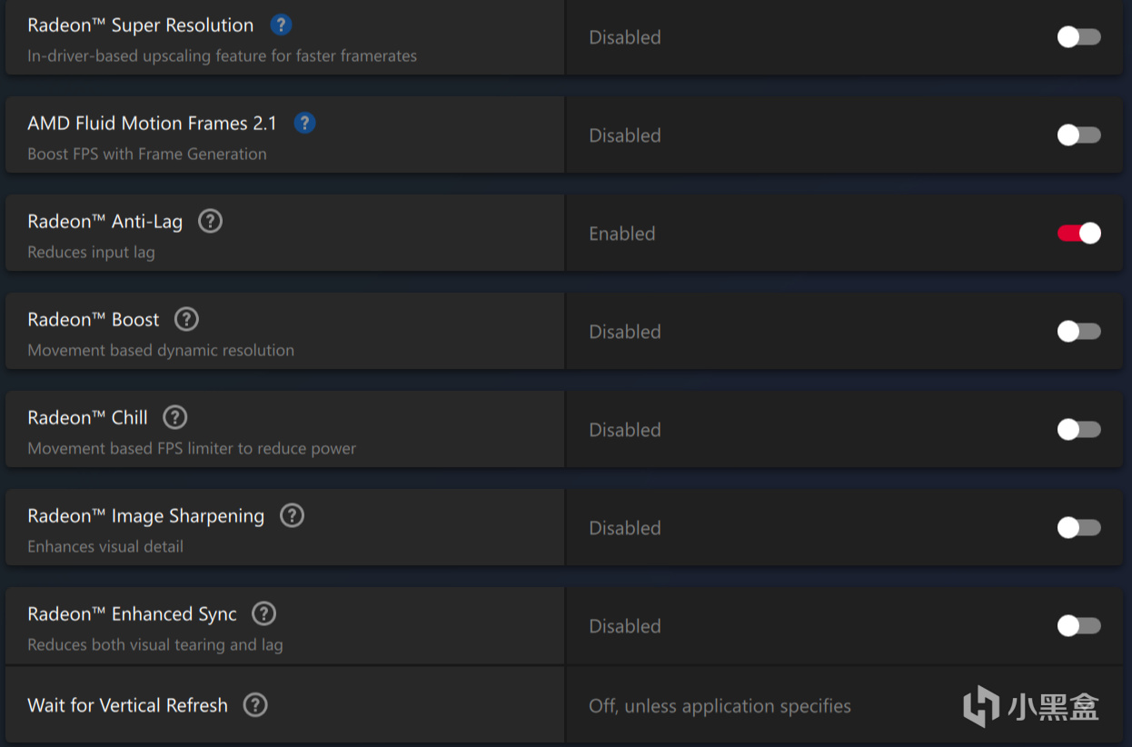 这里着重强调下,Fluid Motion一定要关掉了,至少我在测试的时候,这个AMD自己的补帧功能会导致延迟过高,完全没办法愉快游玩。