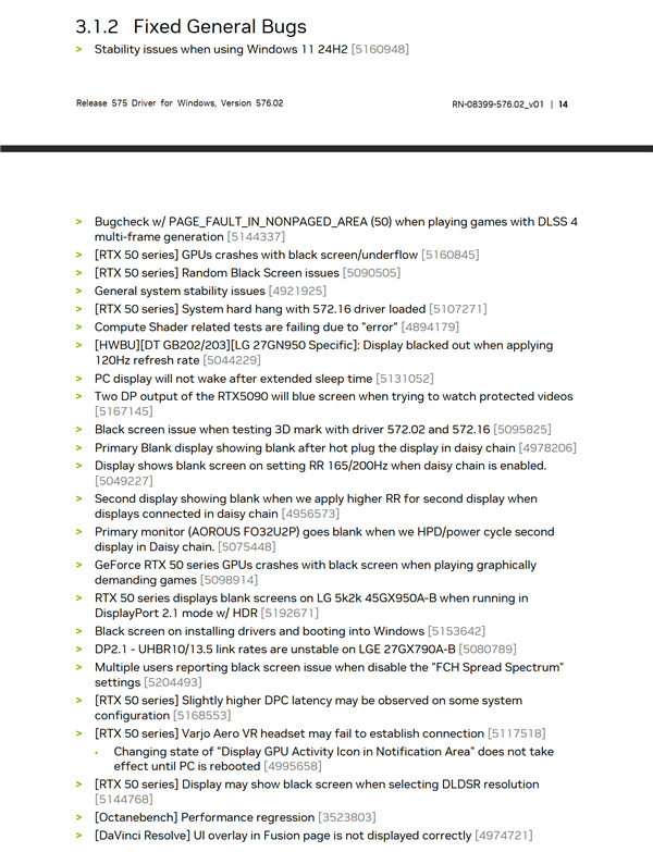 NVIDIA 576.02版驱动修复Bug一览: