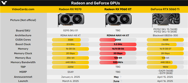 RTX 5060 Ti 16/8GB已经正式登场,与之针锋相对的AMD RX 9060 XT也是摩拳擦掌,将在5月份发布。