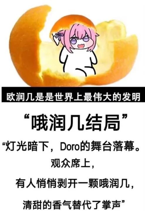 而除過無數形態各異的doro表情包外,一場有關doro與“哦潤吉”(英文“orange”諧音)的新的互聯網模因熱潮,正在悄然到來。