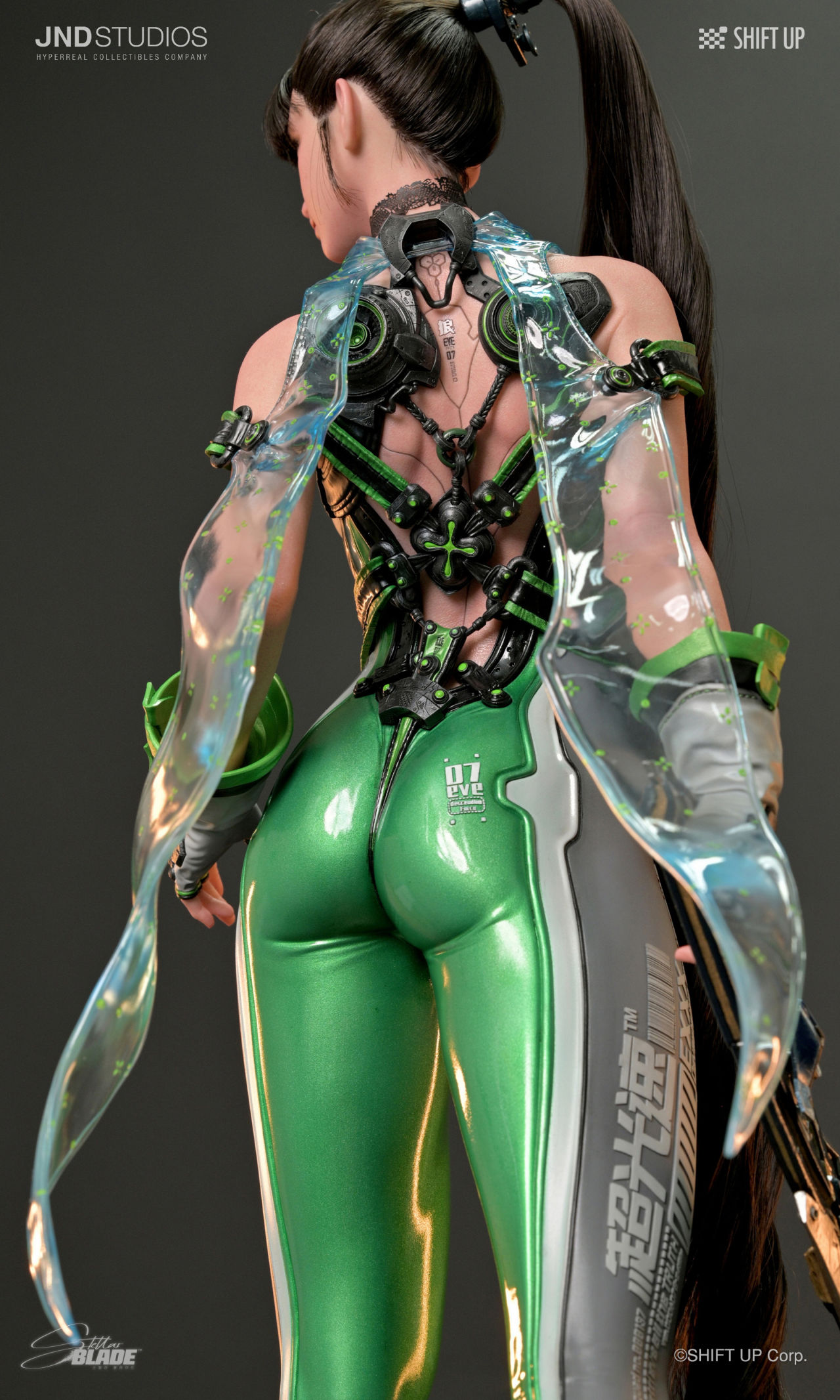 据悉,JND Studios 推出的 1:3 比例《剑星》Eve & Tachy 超真实雕像,系工作室首次涉足电子游戏角色收藏品,联合Shift Up与艺术家金亨泰还原游戏中 “宇宙少女” 形象;雕像包含Eve、Tachy 角色及无人机配件,Eve 规格为W 31cm×L 31cm×H 78.5cm/8.4kg,Tachy 含刀刃时高度达98cm、重量7.05kg,均采用硅胶植发、玻璃眼睛、树脂身体等工艺,配件包含织物颈链、可折叠刀刃(Tachy)及不锈钢支持杆(无人机)。