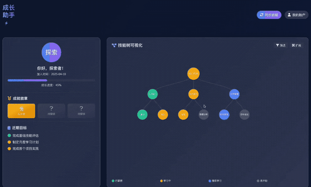 这样你告诉它自己的想法,AI 来根据当下的状况帮你规划方向,拆解技能树并推荐学习路径,量化技能成长。