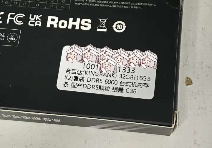 外包装可以看到写着“国产”字样,频率为6000Mhz,时序是C36:
