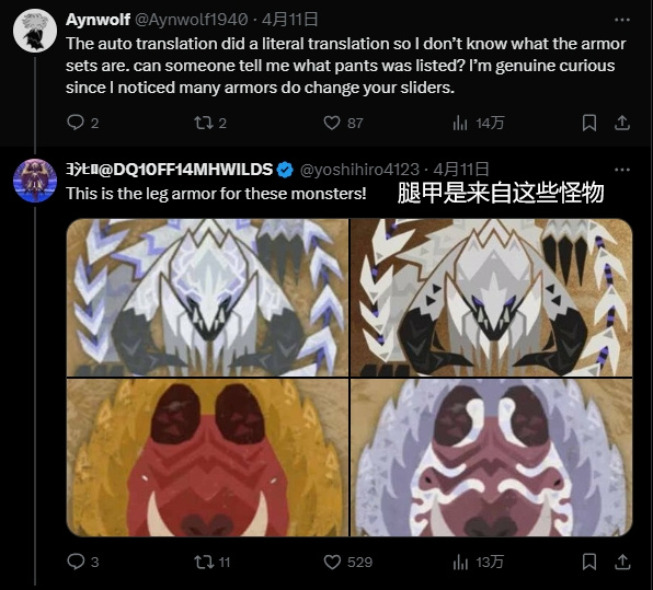 「ヨシヒロ」也感慨英雄所見略同,他表示死神套裝、風鋏龍鎧甲和護兇爪龍鎧甲這三件神器是“物理效果”的代表。