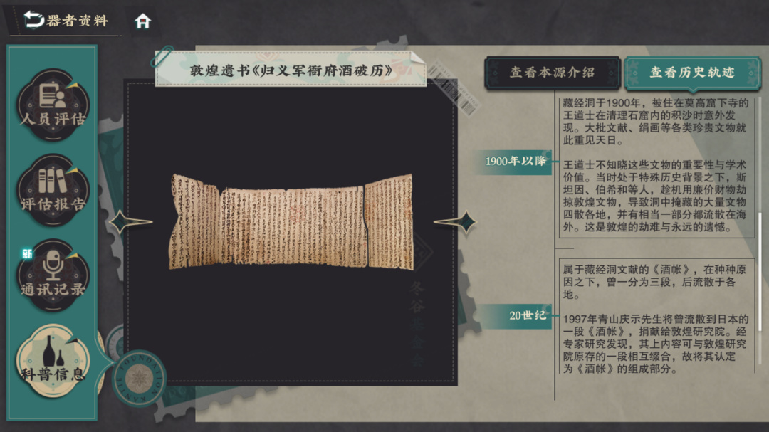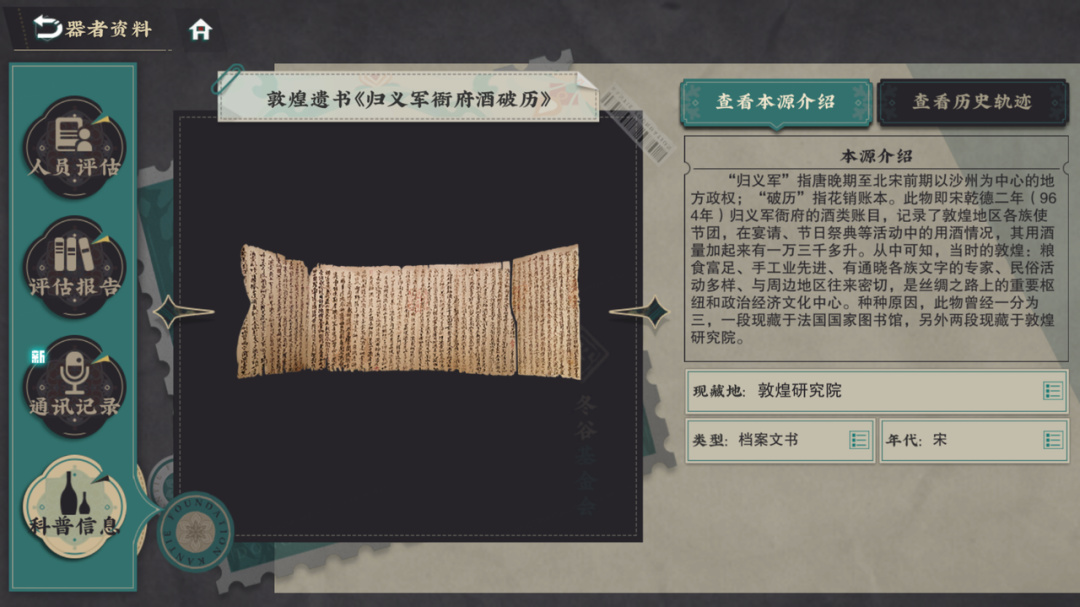 在題材落地上,比如週年慶的兩個限定角色,卻別出心裁地選擇了大衆認知度沒那麼高的文書類文物——酒帳與莫高窟記。