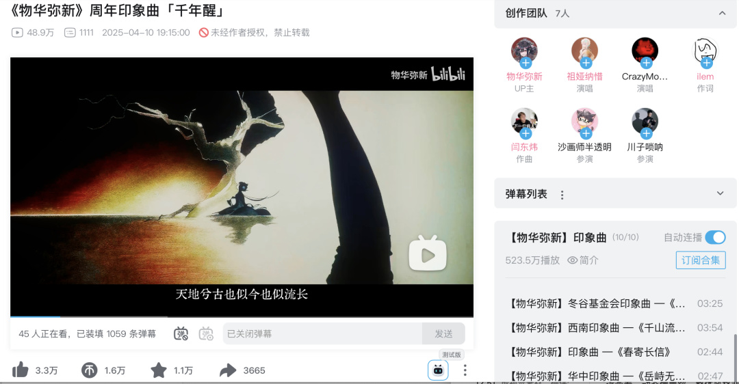 另一方面,B站現在在泛二遊內容上的思路明顯更成熟了,對題材的判斷力、對社區節奏的把控、對產品資源的匹配都在提高。像《物華彌新》這種不靠強玩法、不走強互動的類型,以前可能容易掉隊,現在反而能靠深耕內容慢慢積累出自己的優勢。