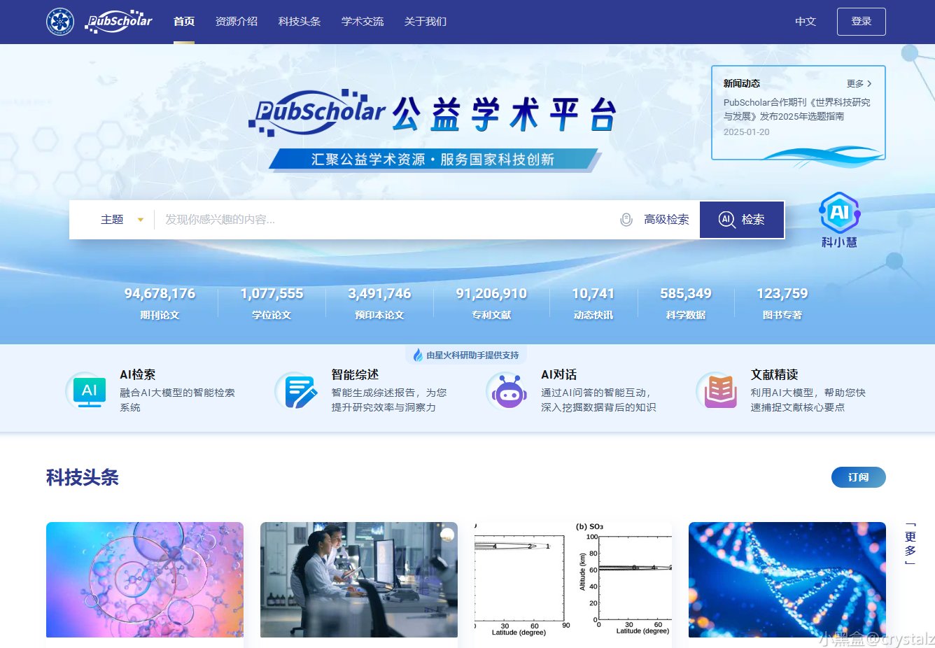 目前平台可检索的元数据约1.9亿条,可免费获取的全文资料量约8623万篇,学术研究必备神站。