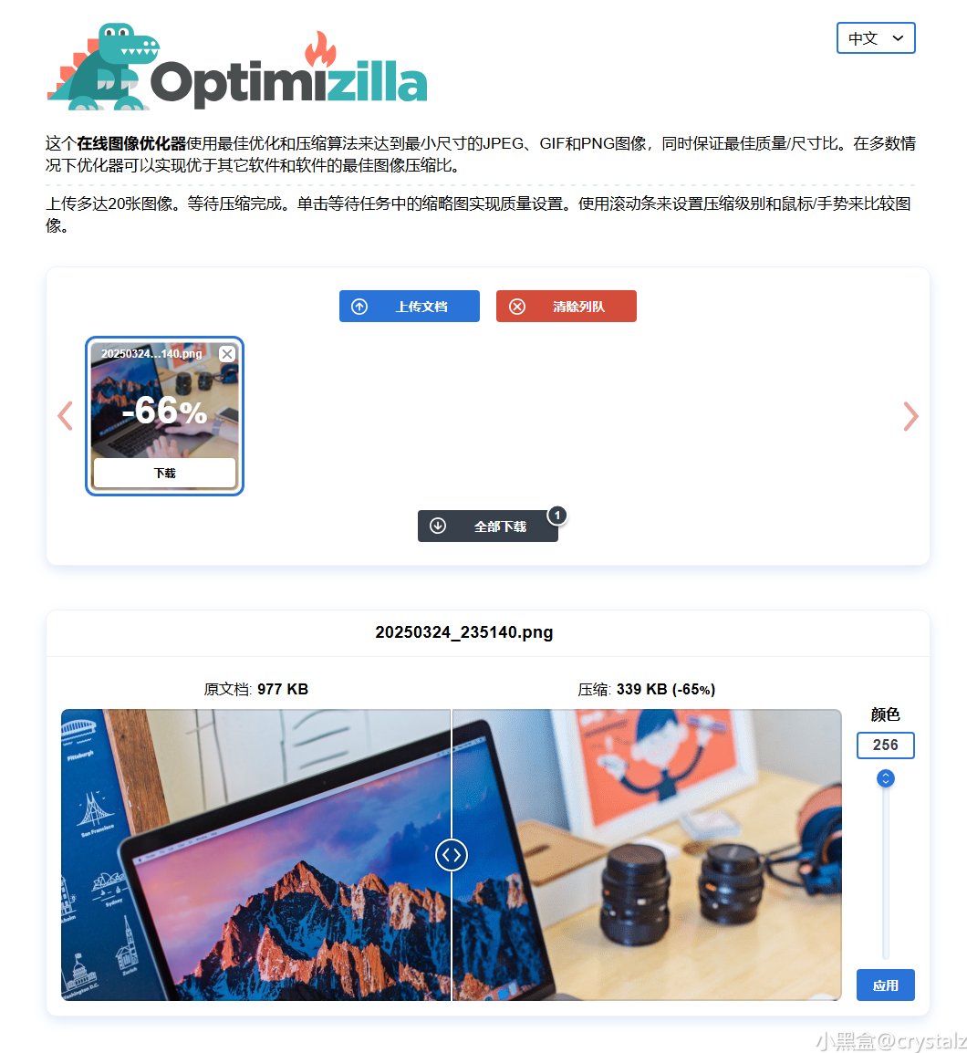 方便好用的图片压缩工具,支持在线压缩 PNG、JPG 和 GIF 三种格式图片。