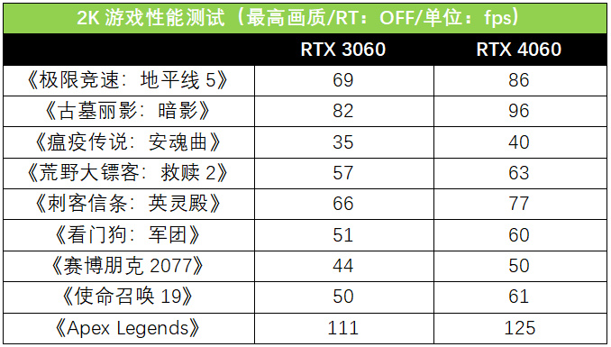 我们知道,新的显卡除了传统性能提升,还有光追性能和DLSS技术的升级,RTX 3060支持DLSS 2而RTX 4060支持DLSS 3,DLSS 3主要升级的地方是在超分辨率的基础上增加了帧生成技术。接下来,我们使用这两款显卡测试了几款2K光追游戏。