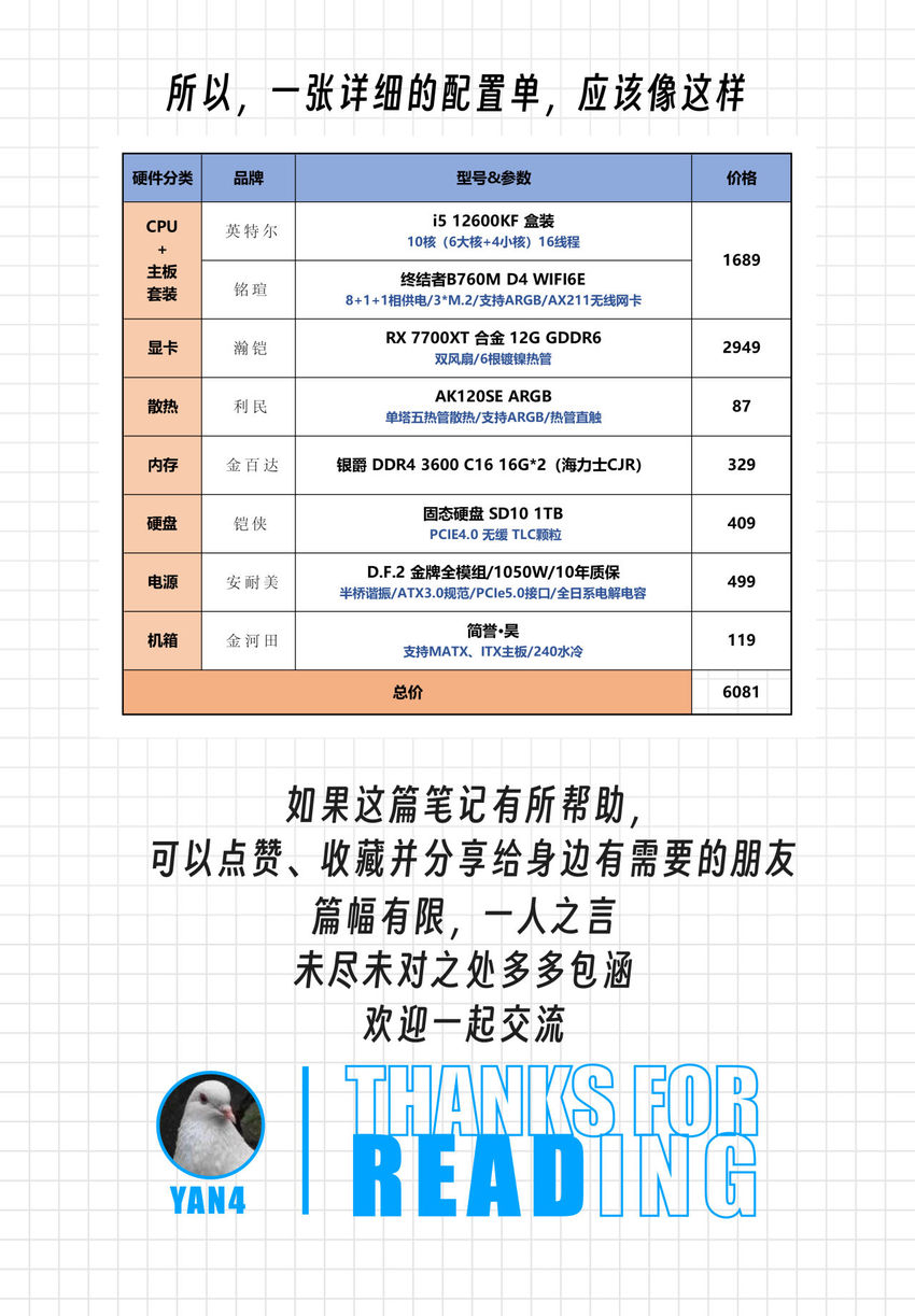 于是这一期我做了一个关于台式电脑配置单的个人心得。