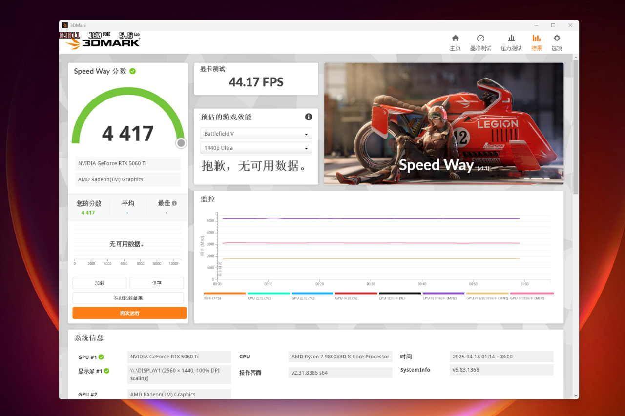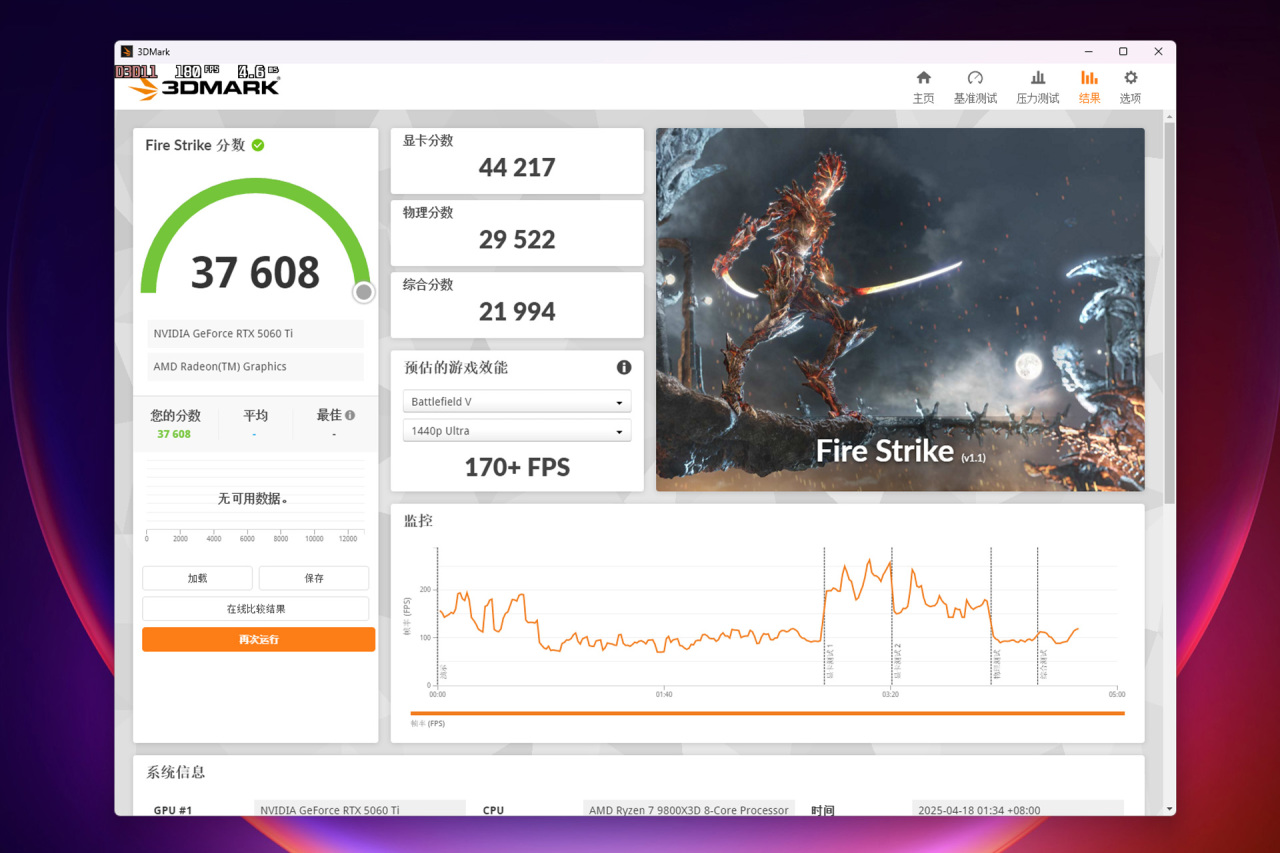 分数和RTX5060Ti 16G差不多,比RTX4060Ti 8G高出约27%。