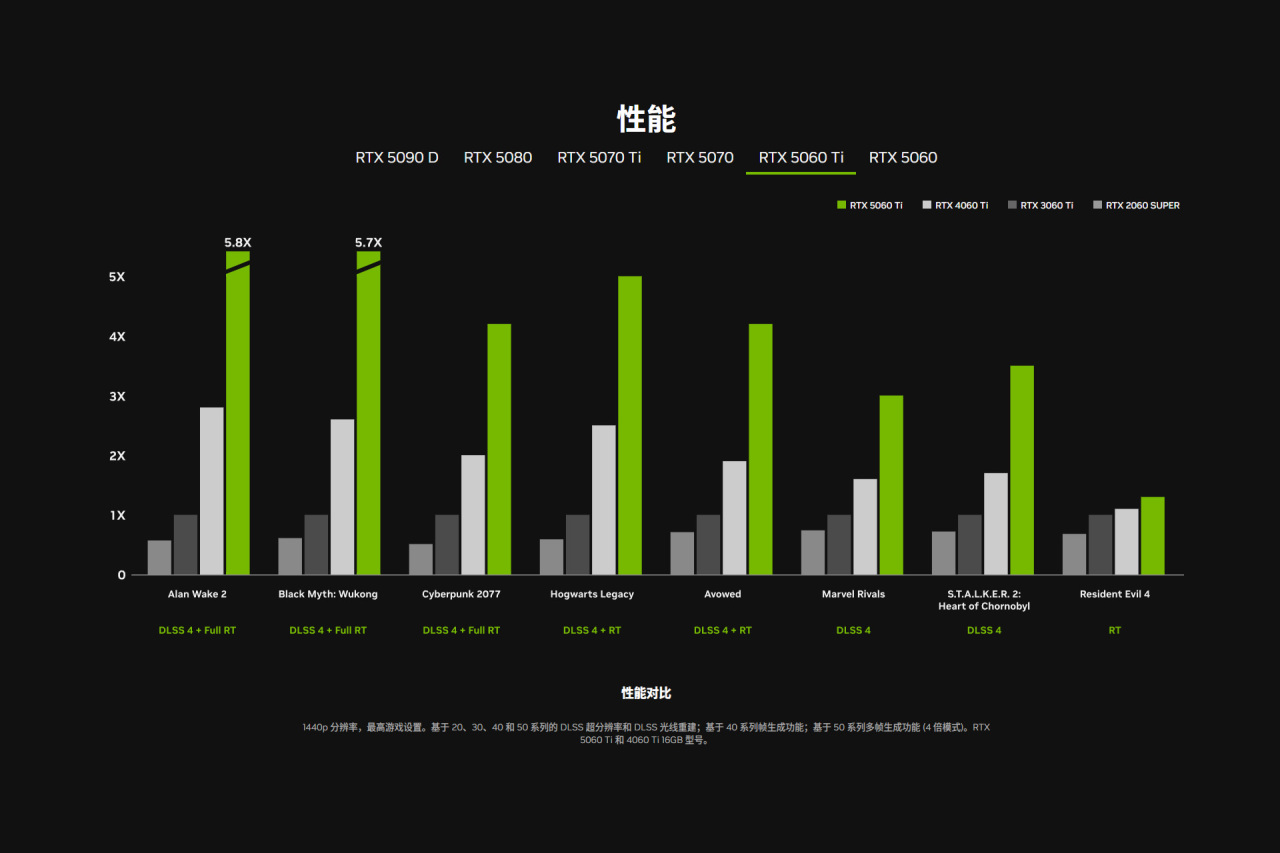 ● RTX 5060Ti有8G和16G两个版本,8G更偏向游戏,16G则常规应用都能覆盖。