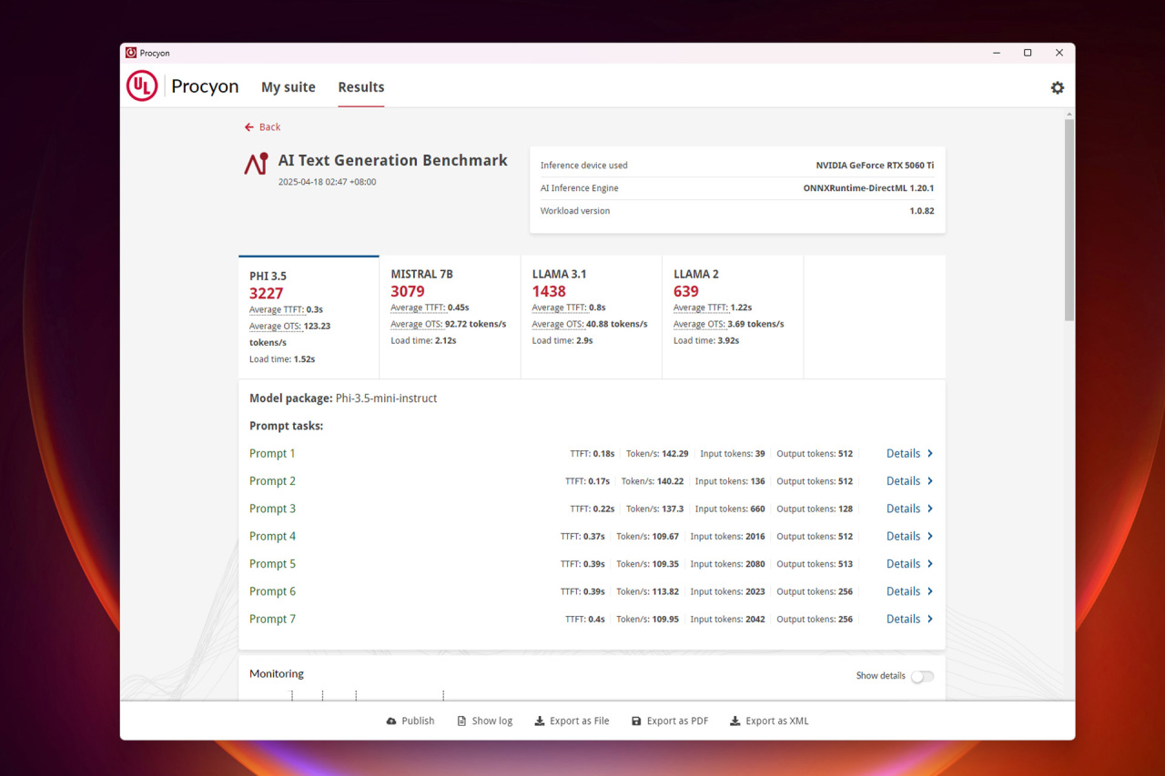 第三是代表文字AI性能的UL Proycon AI Text模组,测试结果如下图所示: