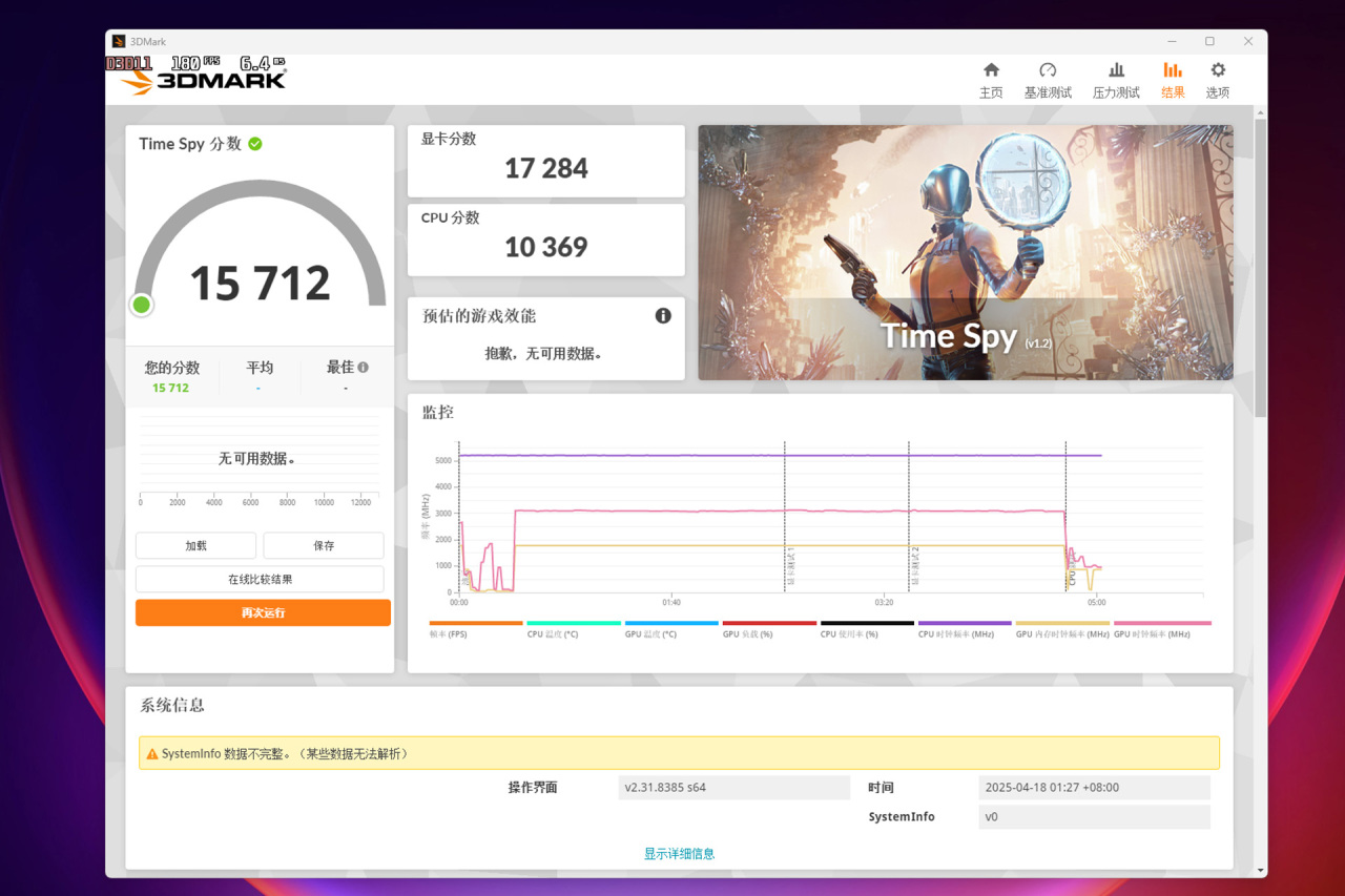 其次是针对DX12的TimeSpy模组,测试结果如下图所示: