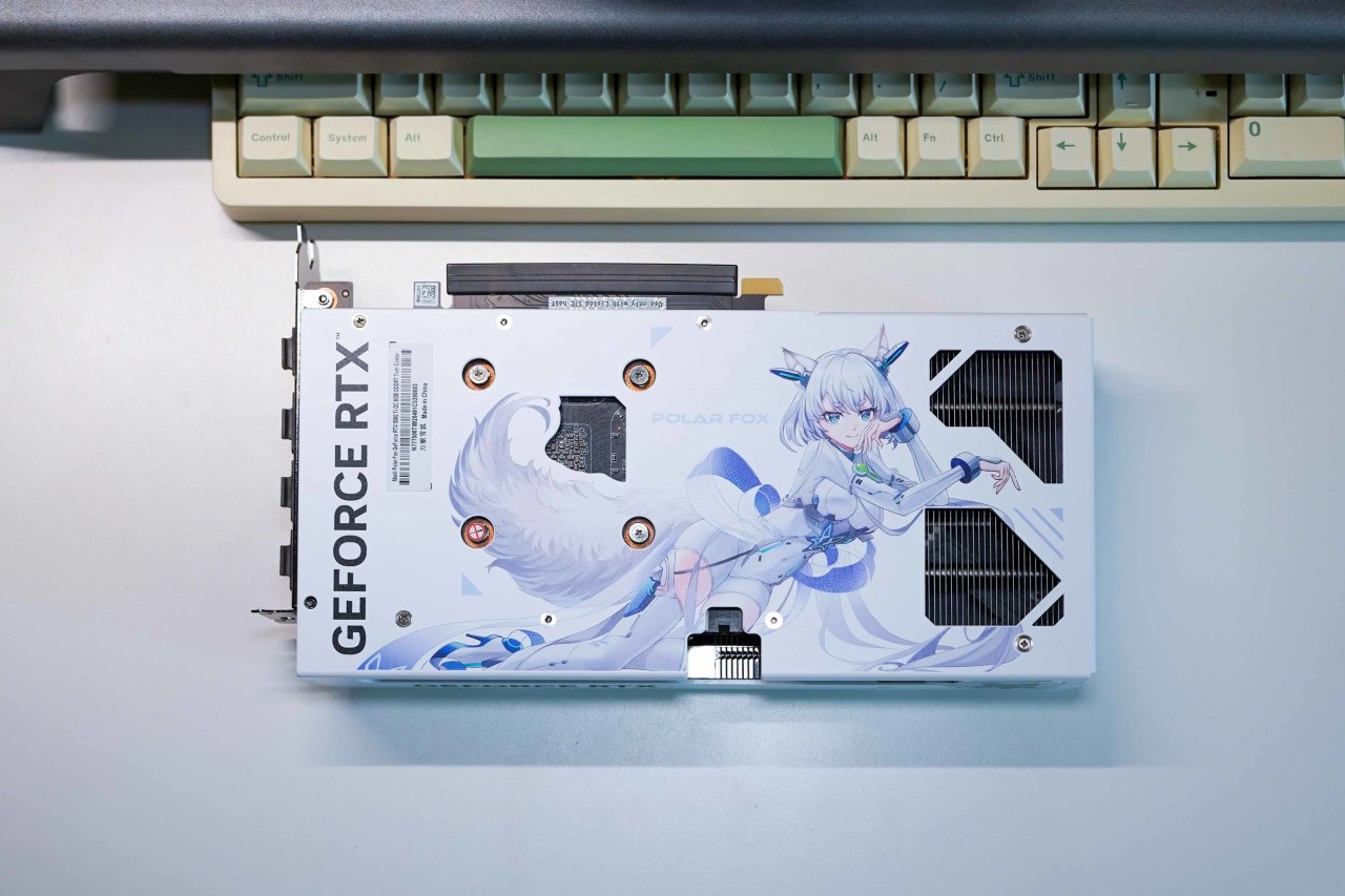 显卡背部则是万丽二次元形象宝拉,是一只小狐娘,不管是正常安装还是竖装都可以为机舱增加一丝俏皮感。