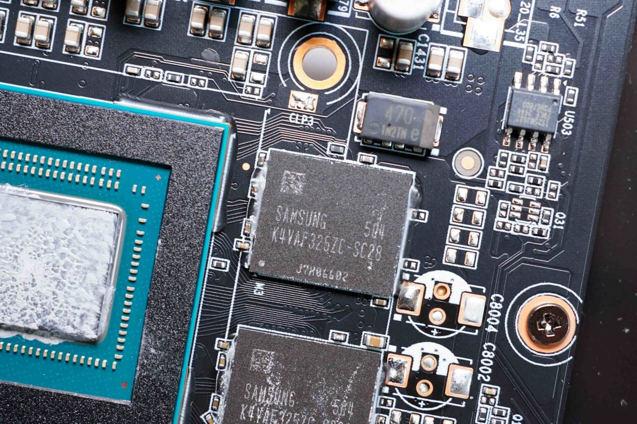 显存则是四颗三星GDDR7颗粒,单颗粒2G容量,后期如果过保损坏知道换什么了吧。