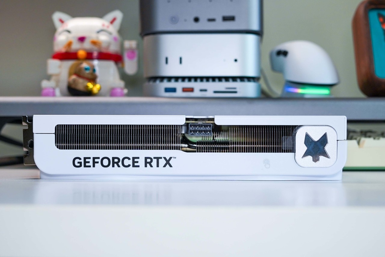 作为TGP仅为180W的甜品卡,万丽雪狐RTX 5060Ti OC 8G只需要一个8Pin供电,位置很常规,就在显卡顶部。