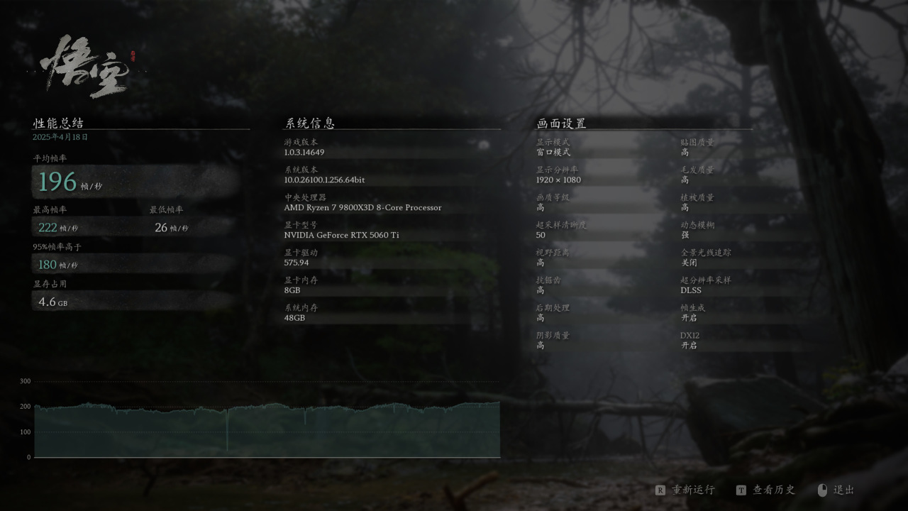 ● 画质选择1080P分辨率+默认高特效+开启帧生成+不开启光追,平均帧数为196FPS。