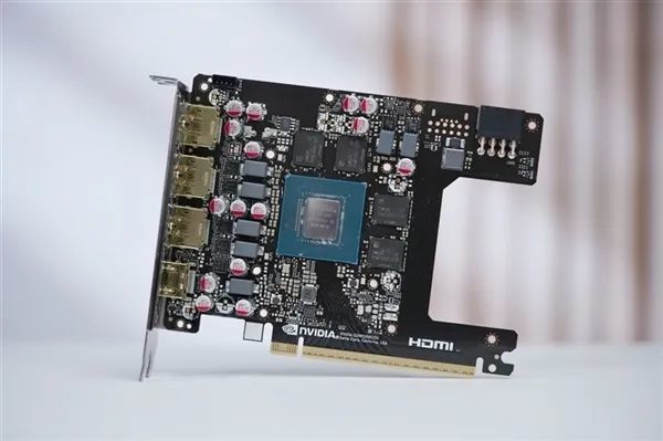 就这块巴掌大的PCB上,密集排列着GPU芯片、显存芯片、供电电路和元件、输出接口、供电接口,刚刚好。