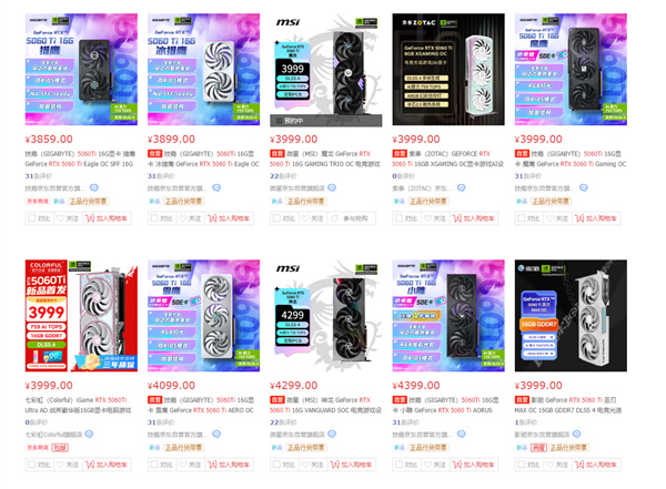 在国内,RTX 5060 Ti同样是16GB销量明显更好,8GB乏人问津,不过价格还是稍微有些高,官方渠道内16GB基本都在4000元左右,8GB 3500元左右,而建议零售价分别是3599元、3199元起。