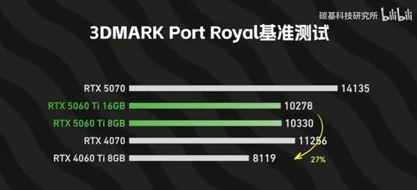 不过在部分游戏中,特别是比较吃显存的游戏,RTX 5060 Ti 8GB的性能开始落后于16GB版本。