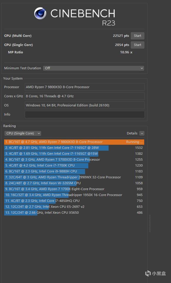 ▼再跑个CineBench R23,单线程得分2054,多线程得分22521。
