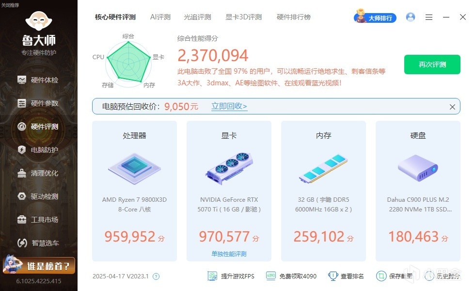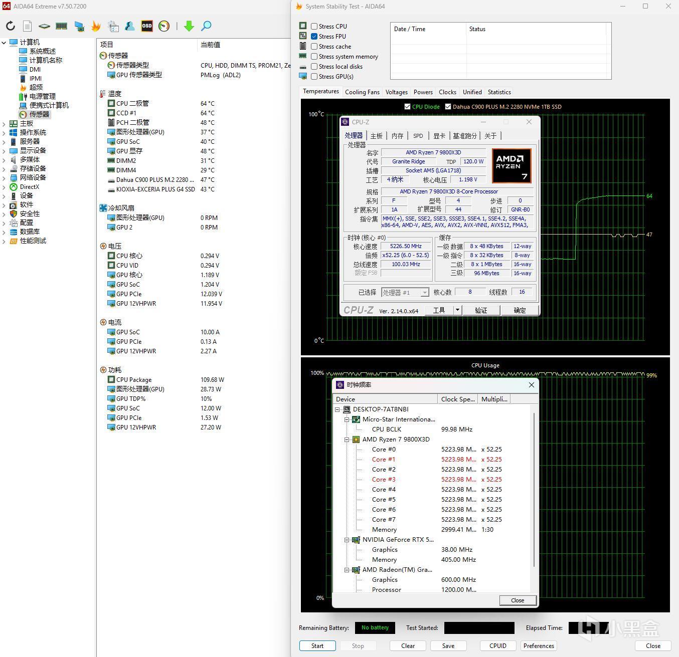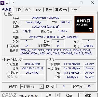 ▼这颗9800X3D,最近非常火,拥有8核、16线程、三级缓存96MB,超级给力。