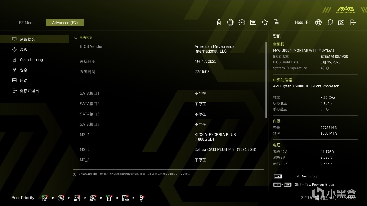 五、微星MAG B850M MORTAR WIFI迫击炮主板 装机
