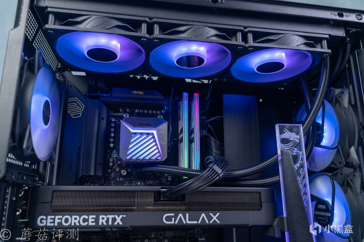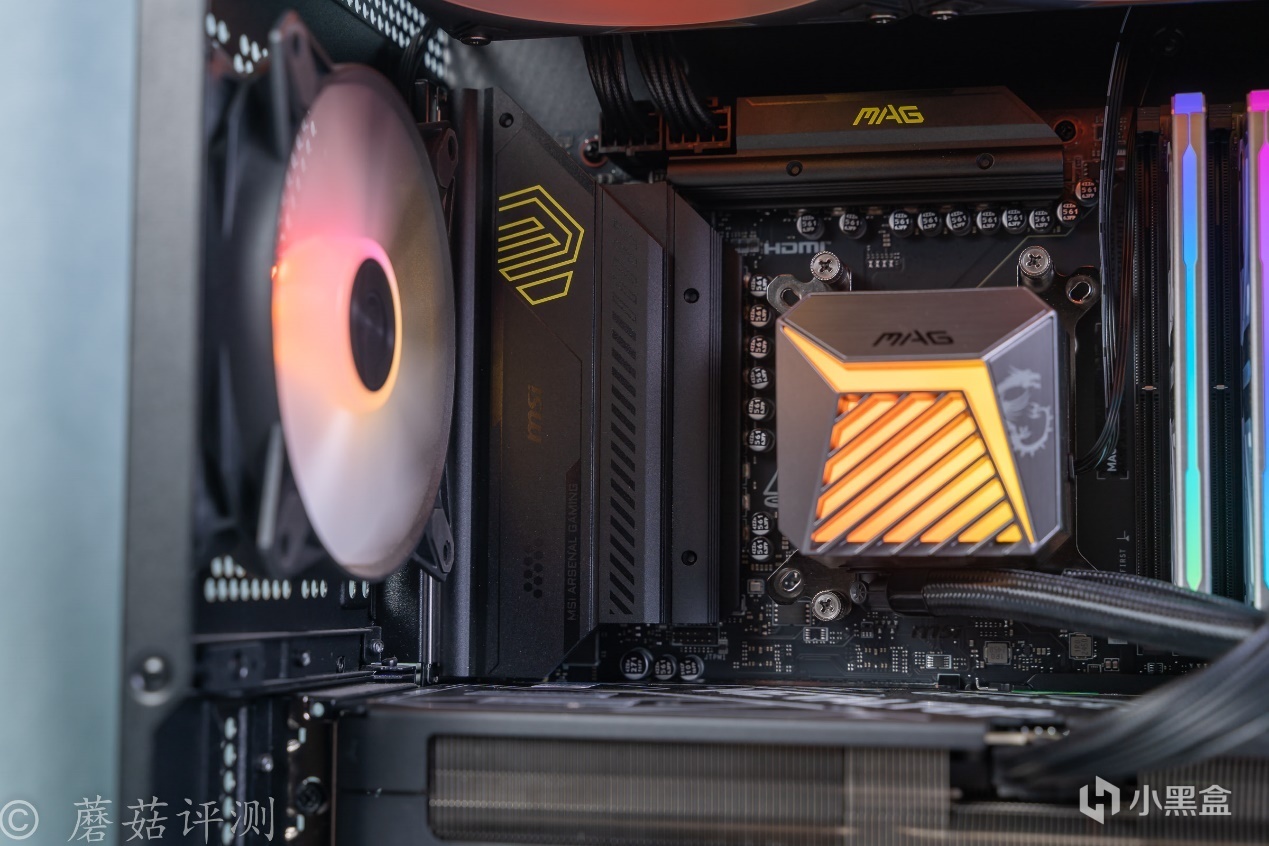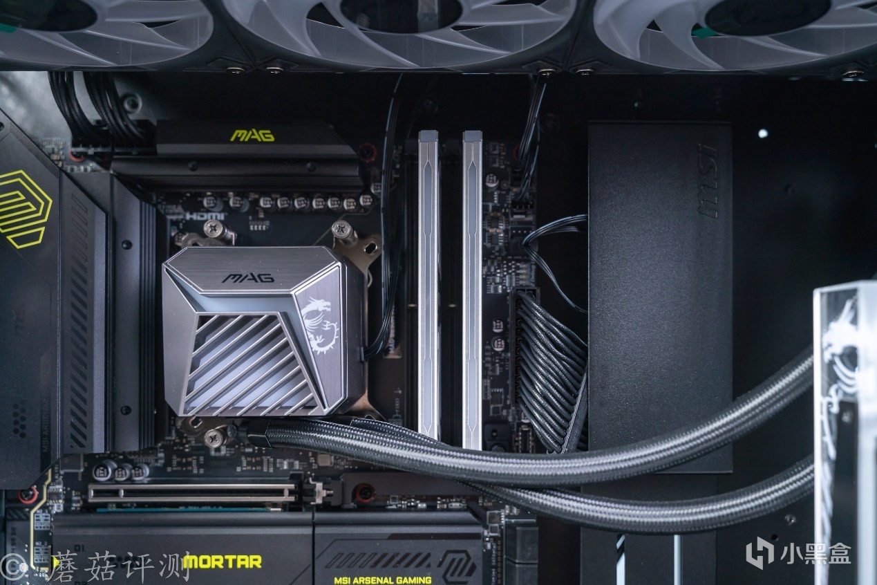 ▼接着,把微星MAG CORELIQUID A15 360冰刃一体式水冷安装好,这款水冷的散热效能非常出众,可以轻松的按住9800X3D。