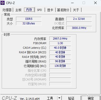 ▼默认情况下,开启EXPO,内存频率稳定在6000MHz,时序40-40-40-96。