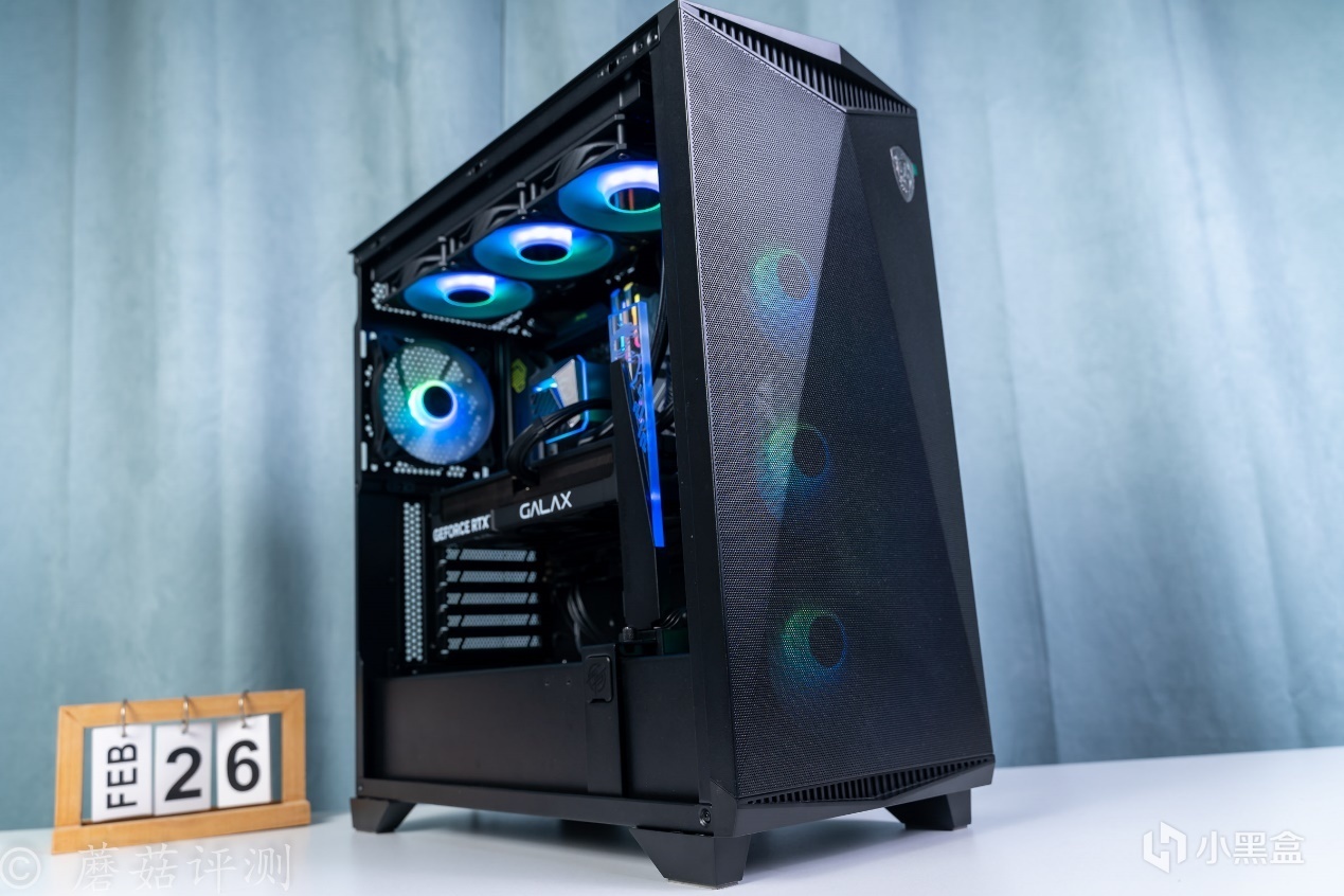▼机箱是微星的MPG GUNGNIR 300R AIRFLOW氪金枪3,这款机箱的颜值很漂亮,前部有超大面积的金属冲孔网,搭配标配的4把支持ARGB灯效的机箱风扇,颜值和散热效果均十分出众。