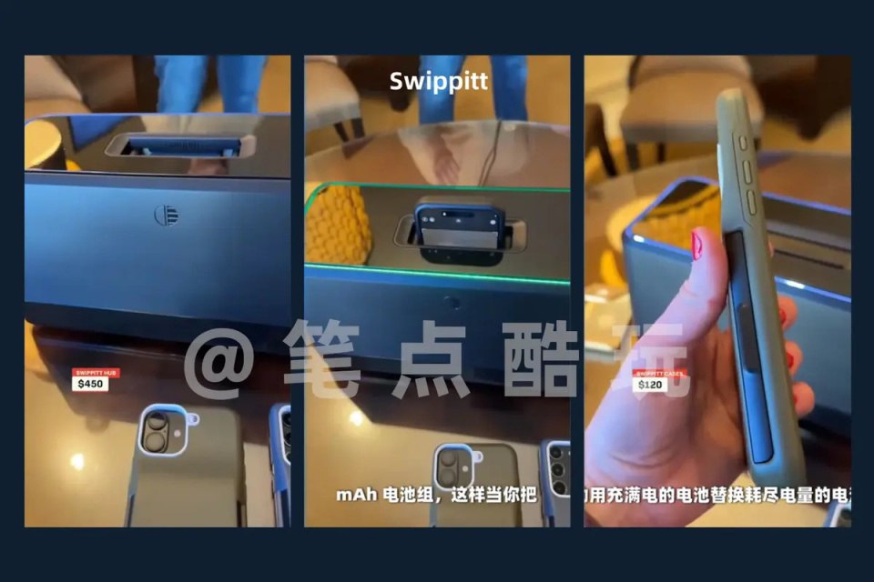 當然,這種更換電池的操作依然需要一些專業技術支持,普通用戶想用第三方電池私下換用依然有着很大的難度。而 CES 2025 公開的 Swippitt 手機換電站的思路,更像是在更換手機殼。這樣的設計更順手也更簡單,只不過用在現在的 iPhone 上, “電池殼” 的厚度會有糟糕的手感。