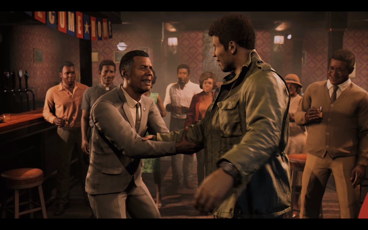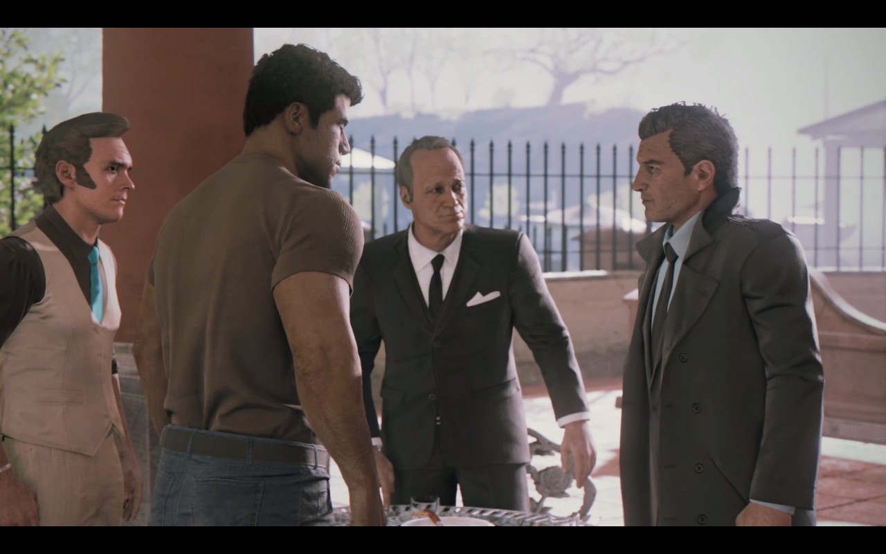 《四海兄弟3:最终版》的剧情是最令我失望的部分,第一部汤米·安吉洛的故事深刻且给人以启示,第二部维托·斯卡莱塔的剧情虽逊色不少,但也能带给我一些思考。而这第三部林肯·克莱的故事毫无营养,高开低走,公式化剧情,脸谱化反派,除了开头结尾基本没有令我印象深刻的地方。游戏的序章十分出色,纪录片式的插叙、电影般的分镜与恰到好处的配乐把我的期待拉到了顶点,但之后的剧情就是清据点/杀头目,然后再放一两分钟纪录片的循环,最后的结尾也显得唐突和草率。同时,也有一些情节设定不太合理。在人物塑造方面,除了主角和身边的情报官之外,其余人物的塑造不多甚至极其稀少。三个副手形同虚设,除了前期招募的时候有点剧情,其余大部分流程都在自己办公室里当大爷,相关的支线都是无聊的跑腿开车,完成之后只有几句对话,通关之后我对他们的了解还只是浮于表面。而其他的小头目更是毫无特色,千篇一律,存在的唯一意义就是被我做掉然后解锁新的头目。大反派的塑造也寥寥无几,除了开头和结尾之外,只出现在几个简短的过场。主角的设定也过于个人英雄主义,完全是一个头盖骨坚硬的越战超人,一个人就能把一座城的黑帮屠戮干净。把第三部的剧情整体和前两作对比来看,前两作的主角至少加入了黑手党,展示了黑手党的组织结构和运作方式,而本作中,除了杀的人都是黑手党外,好像和黑手党没什么联系,偏离了系列主题。