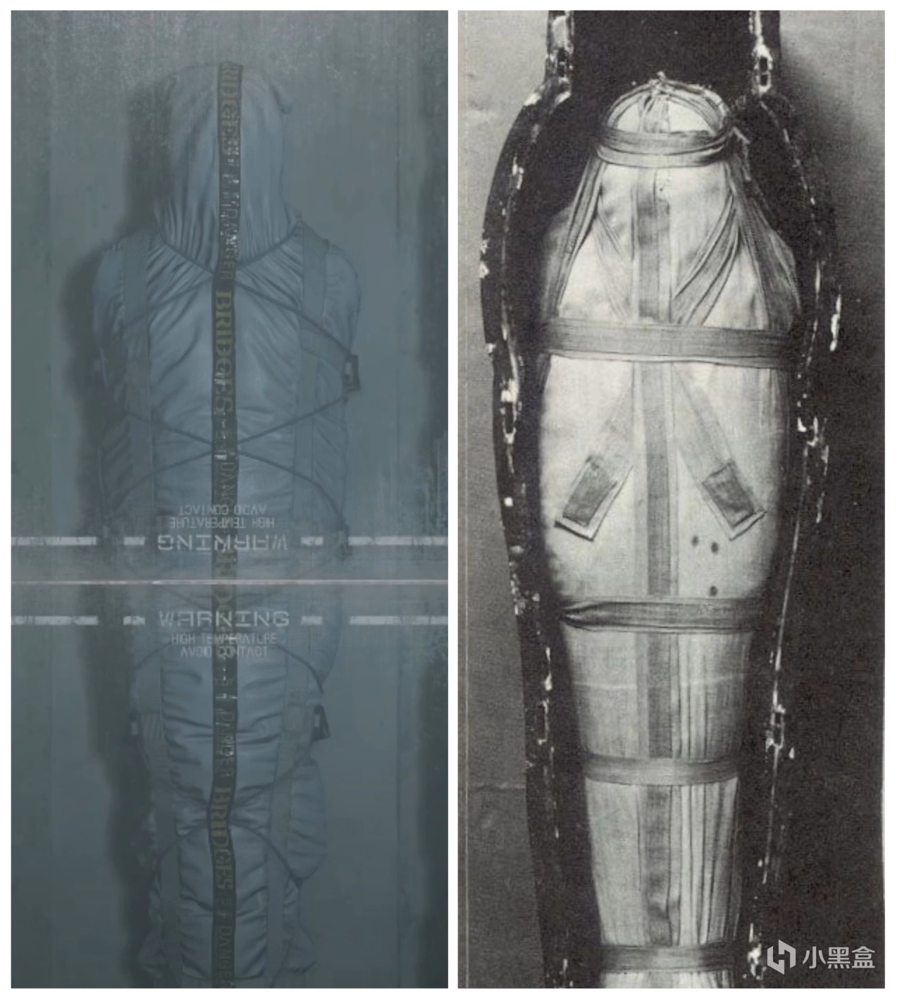 因此在古埃及文化中,生者有責任幫助死者踏上通往來世的旅程,這種信仰使他們高度重視對死者肉體的保存。因此,屍體防腐術與木乃伊化技術應運而生,成爲古埃及文化中極爲重要的一部分,而《死亡擱淺》中對屍體的處理與古埃及人的木乃伊極爲相似。