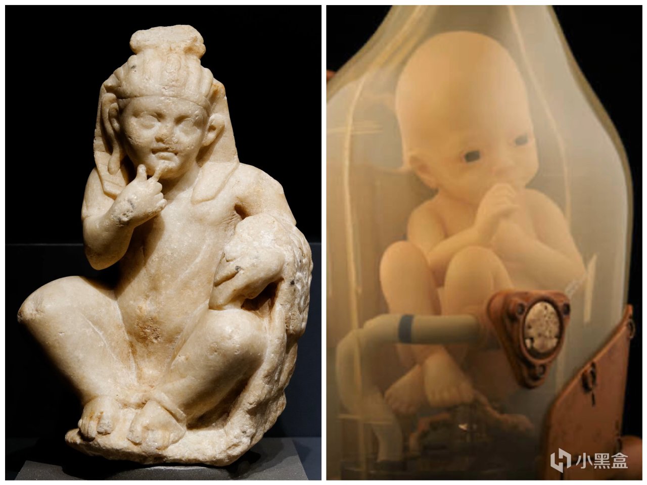 在埃及神話中,荷魯斯擁有多種不同的形態。成年後,荷魯斯與太陽、天空和獵鷹有關,但孩提時代的他被稱爲“Har-pa-khered”或“Harpocrates”(哈爾波克拉特斯,幼童荷魯斯),被描繪成一個含着(或吮吸)手指的裸體男嬰。