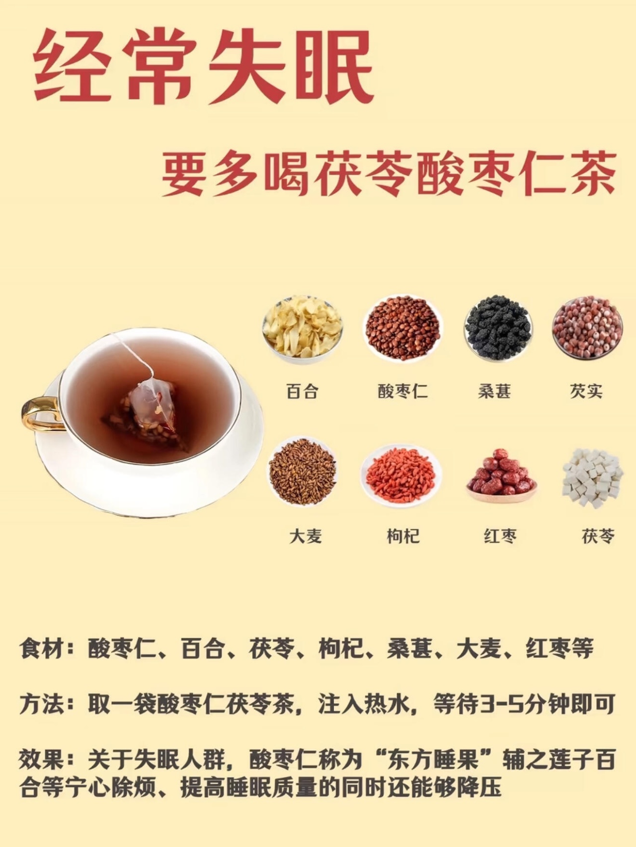 黃金組合:酸棗仁+茯苓+百合煮茶,傳統配方協同增效。
