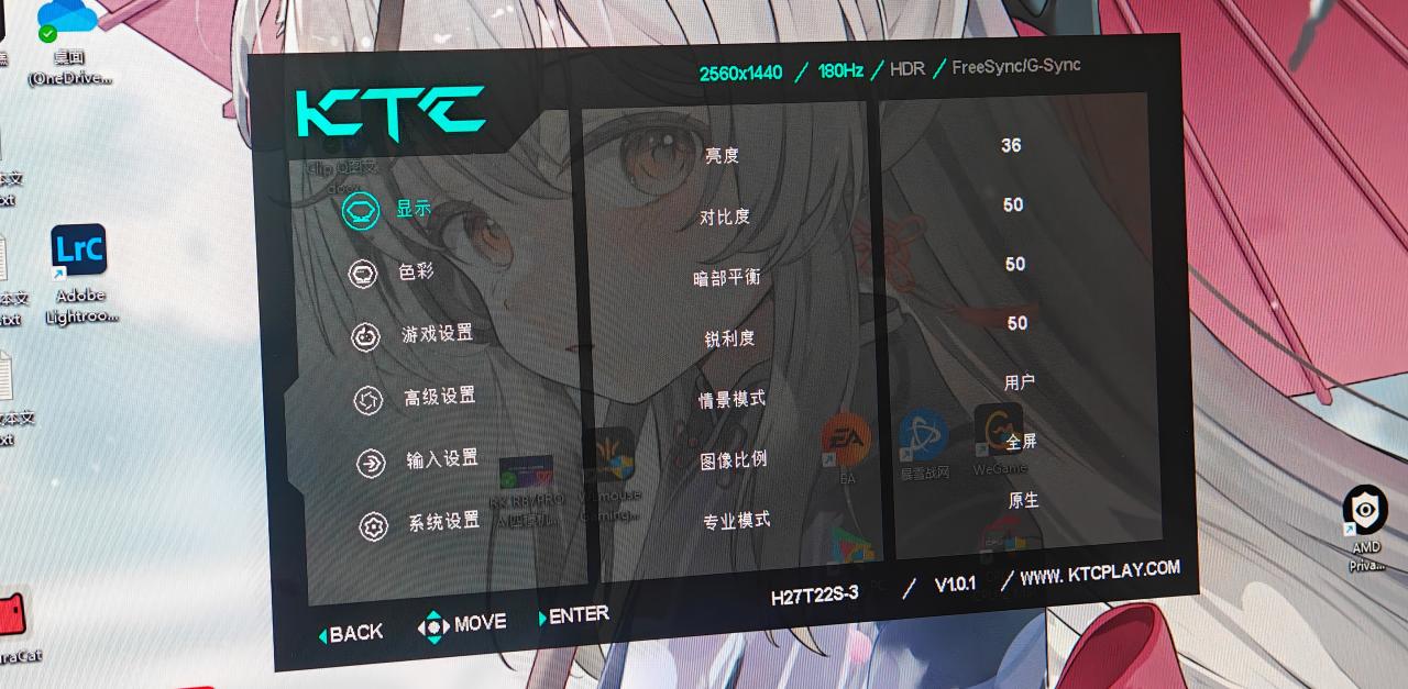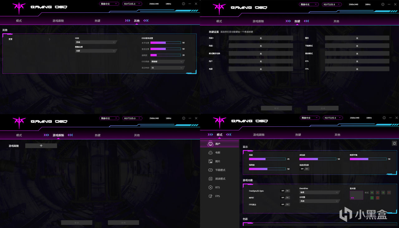 满足电竞玩家的需求。还支持调节防蓝光等等。