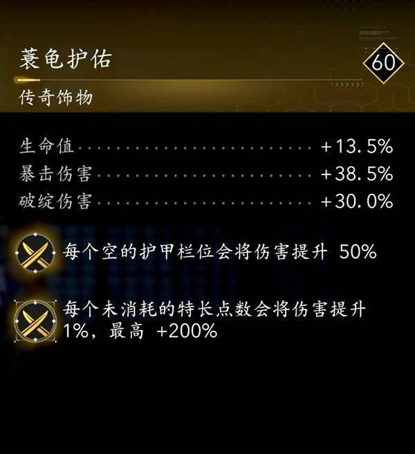 傳奇銘刻詞條——每個空的護甲欄位會將傷害提升50%。