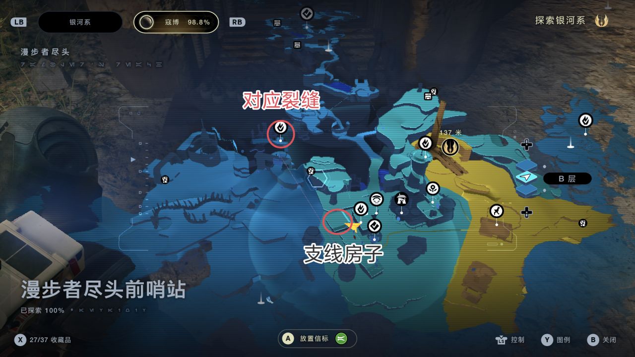 2.漫步者尽头前哨站处一个,需要先完成如图房子里的支线才会出现,进入房子要先解锁原力抬升技能。